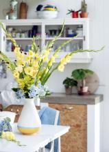 Mettez les glaïeuls dans un vase propre et recoupez les tiges de 3 à 6 cm avec des outils propres. Ajoutez Chrysal Clear Nourriture universelle à l'eau du vase pour profiter de vos glaïeuls plus longtemps. Ne les mettez pas à proximité de fruits qui mûrissent, dans les courants d'air et à la lumière directe du soleil. Quand il n'y a plus que 1/3 d'eau dans le vase, ajoutez de l'eau complétée de nourriture pour fleurs coupées.
