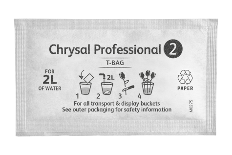 Chrysal Professional 2 bénéficie désormais d'une nouvelle formule pour garder les fleurs plus belles plus longtemps.  Professional 2 a été spécialement mis au point pour toutes les fleurs coupées en vases et en seaux, chez les grossistes, bouqueteries et détaillants. Il contient suffisamment d'éléments nutritifs pour un développement naturel de la fleur, sans pour autant stimuler l'épanouissement complet. La nouvelle formule stimule l'absorption d'eau et maintient les fleurs et les feuilles fraîches et belles. La solution peut être utilisée jusqu'à 7 jours, limitant ainsi les changements d'eau.  Elle permet également de réduire les pertes jusqu'à 50% en moyenne comparé à de l'eau seule.